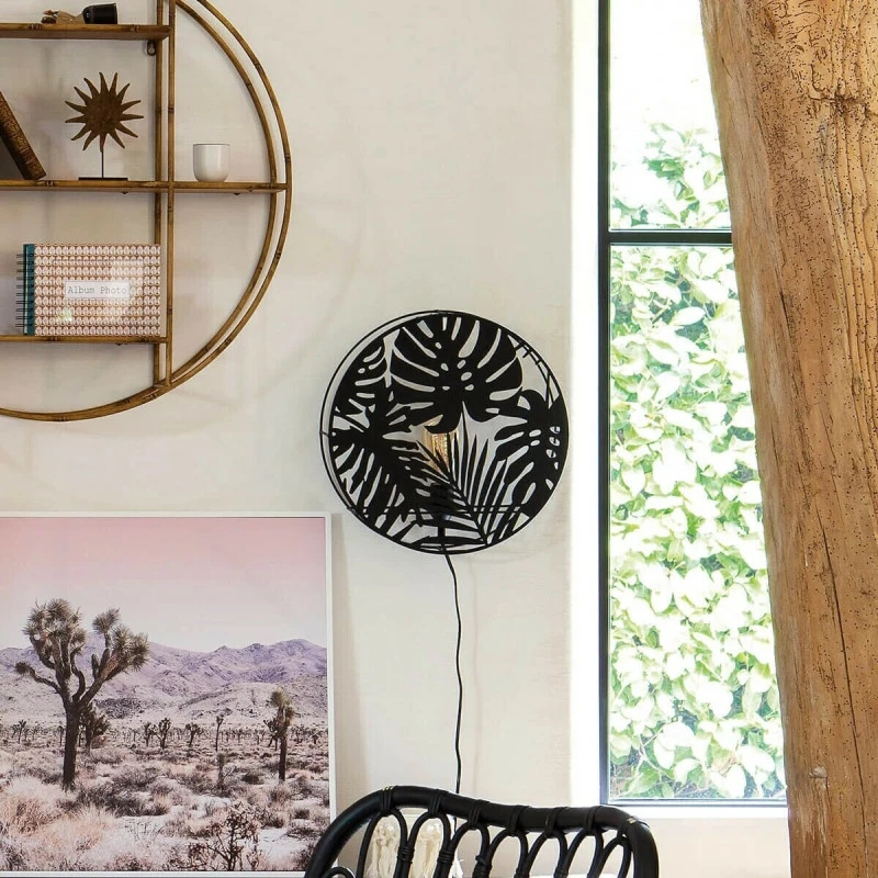 Sublimez vos murs en apportant de la lumière grâce cette applique en métal noir et décor de feuilles de la marque Atmosphera.