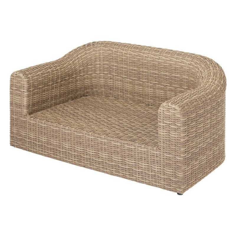 Craquez pour le charme de la résine tressée à l’extérieur avec ce canapé 2 places de la collection Moorea en coloris savana de la marque Hespéride.