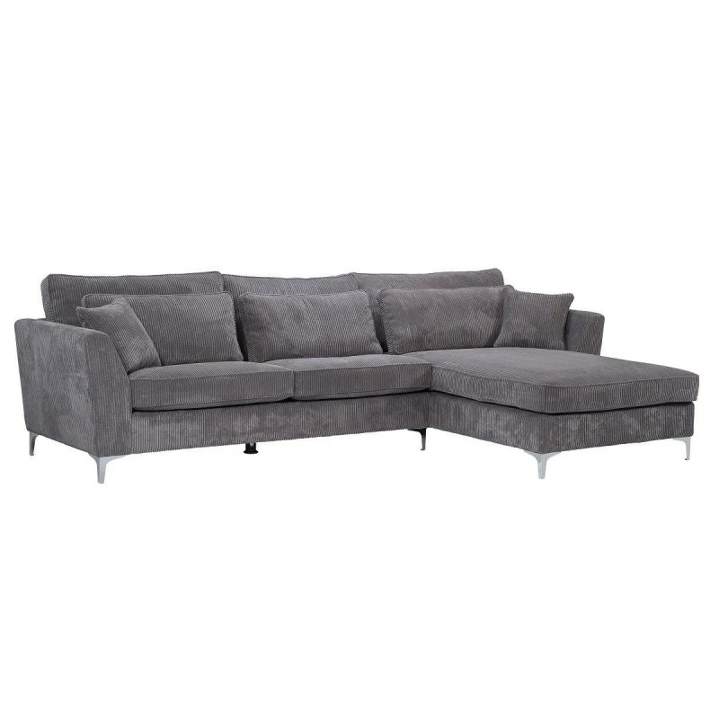 Canapé Angle Droit Isla Velours Côtelé Gris