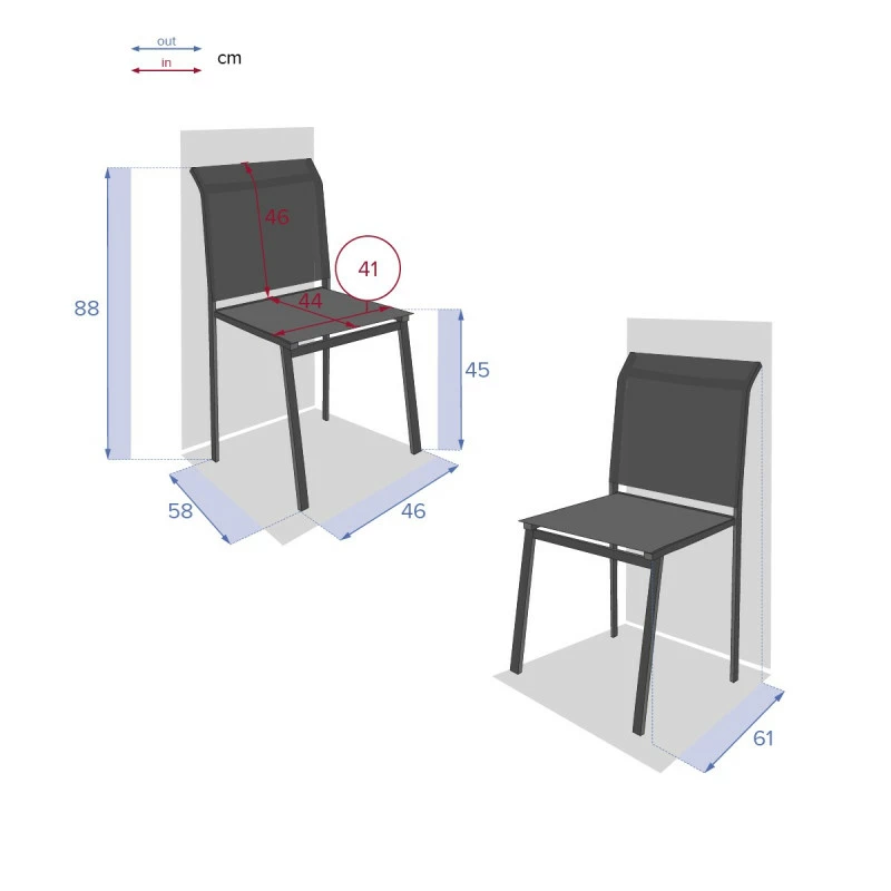 La chaise est traitée époxy antirouille et contre la décoloration.