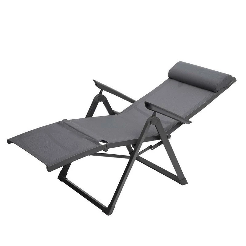 La chaise longue Decima en coloris ardoise et gris quartz de la marque Hespéride vous garantira une détente tout en confort.