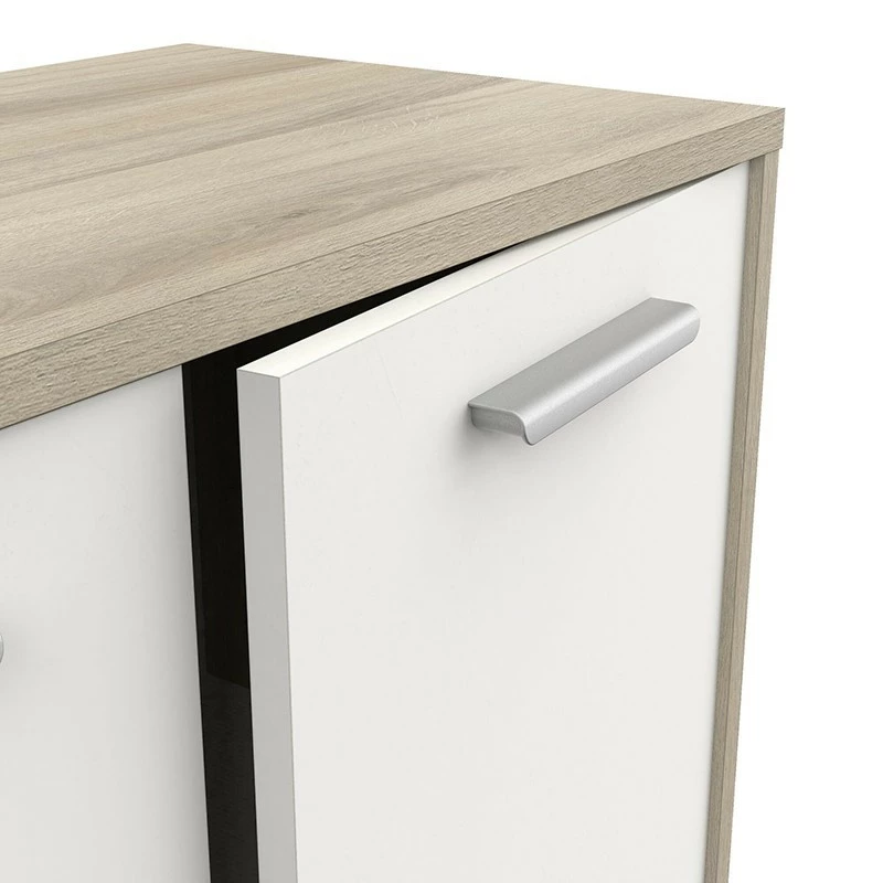 Avec son style épuré, le buffet bas 2 portes 4 tiroirs Léo s’intègre facilement dans un intérieur.