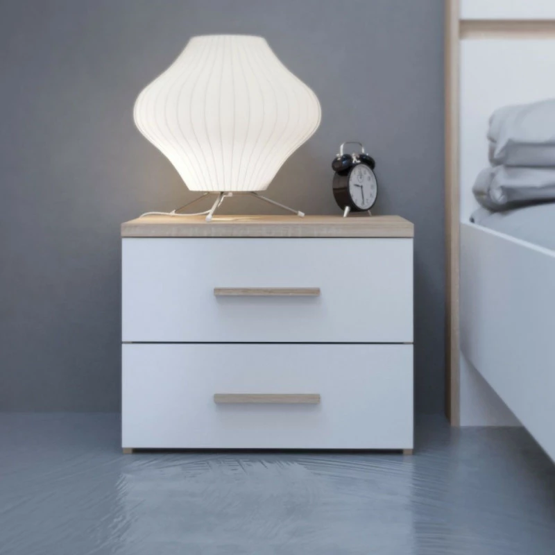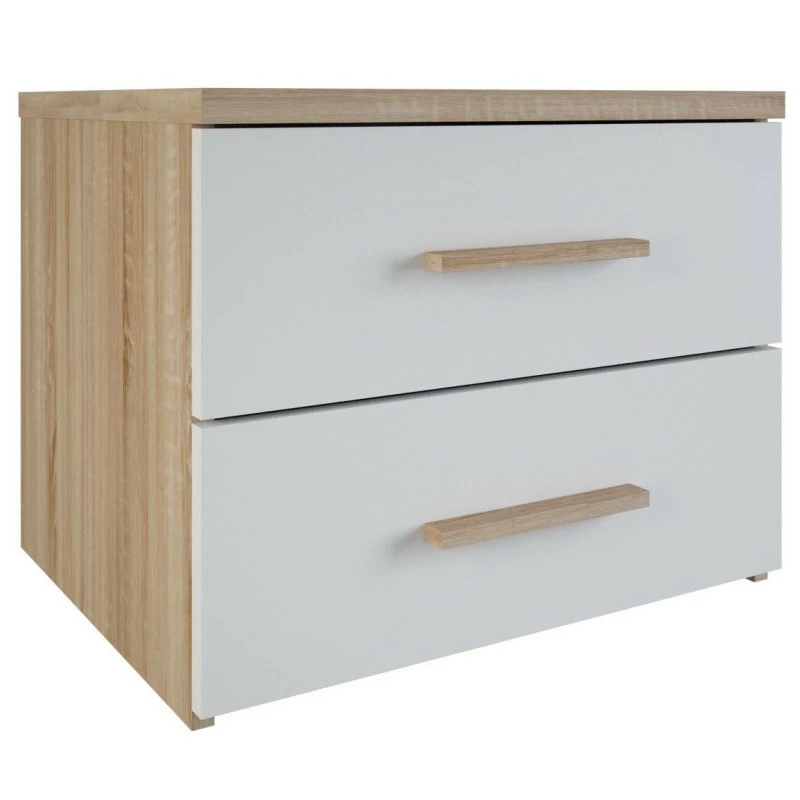 Esthétique et discret, ce chevet 2 tiroirs coloris blanc et chêne collection Lena vous satisfera grâce à son excellent rapport qualité / prix. Dans son style scandinave très épuré, il remplira parfaitement sa fonction, c’est à dire offrir un espace de rangement proche du lit tout en gardant un design adaptable à la grande majorité des décorations. Les 2 tiroirs montés sur coulisses métal.