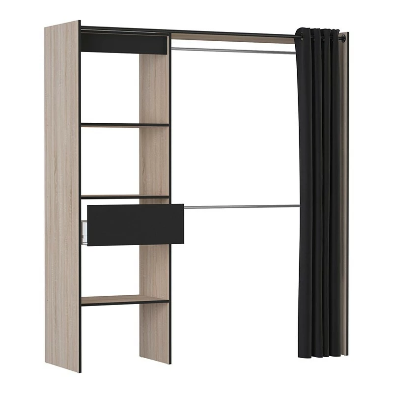 Le rideau noir en polyester (L203 x H200 cm) est fourni avec le meuble.Â