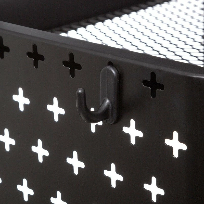 Idée astucieuse : crochets à mettre dans l’un ou l’autre des orifices en croix pour accrocher les ustensiles.