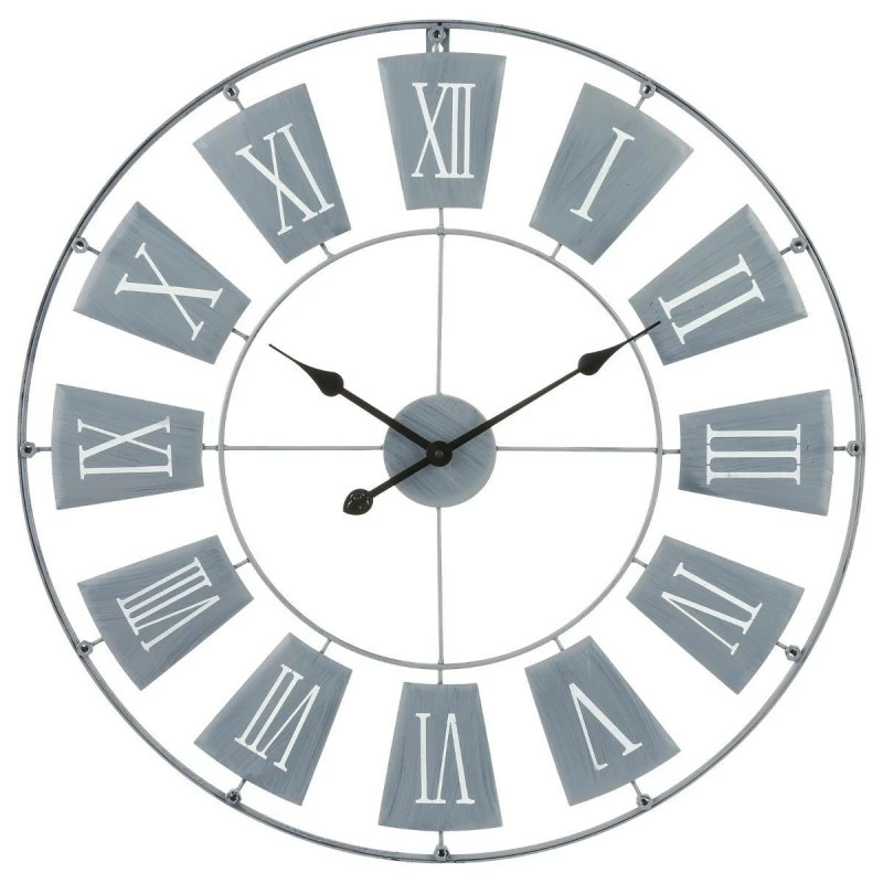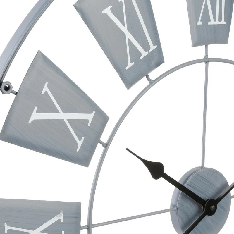Horloge en métal chiffres romains coloris gris clair. Pour un style moderne et contemporain.