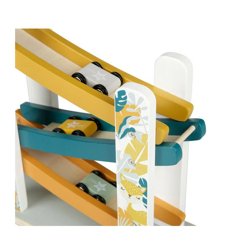 Plongez dans un monde ludique avec le jeu enfant en bois « Circuit de voitures » Ostaria, où des petites voitures dévalent une pente palpitante !