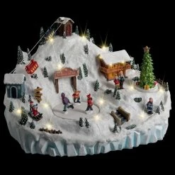 Déco Noël Chalet Montagne Piles Lumineux Animé Musical