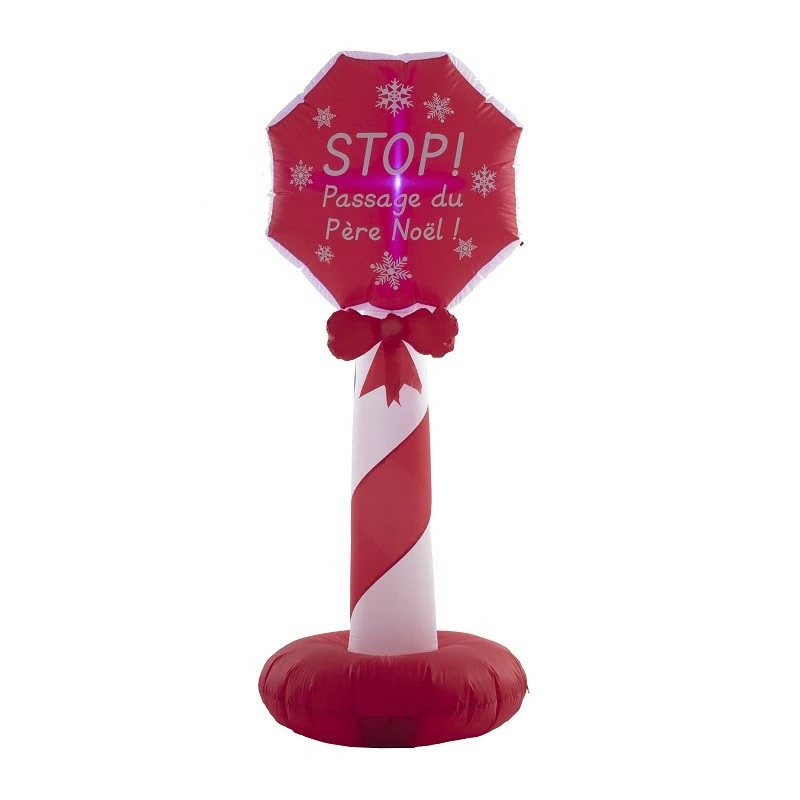 Pancarte Stop : passage du père Noël, gonflable avec système électrique, hauteur 152 cm.