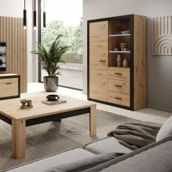 Vitrine Ă©clairage LED ChĂȘne Blanchi Elba