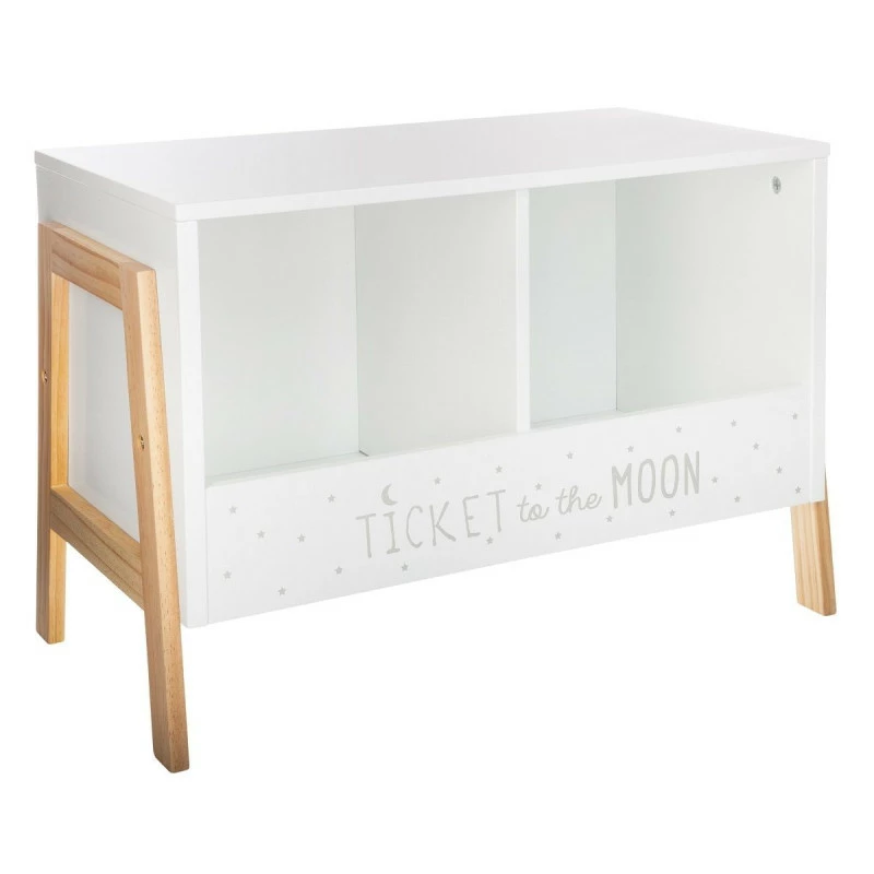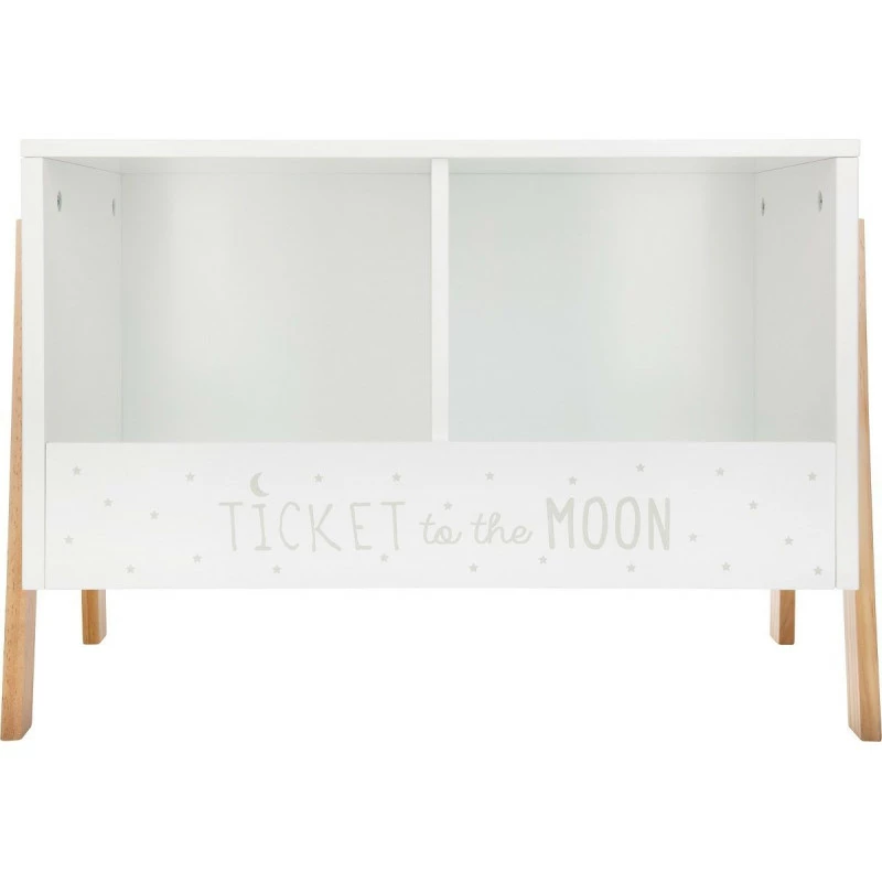 Rangement 2 cases avec message sur le devant ‘Ticket to the moon’.