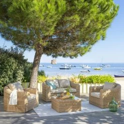 Craquez pour le confort du salon de jardin Moorea 4 places coloris savana de marque Hespéride.