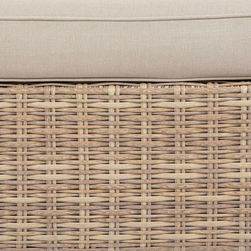 Le salon Mooréa dispose d’une structure en aluminium traité époxy antirouille habillée de résine synthétique tressée.