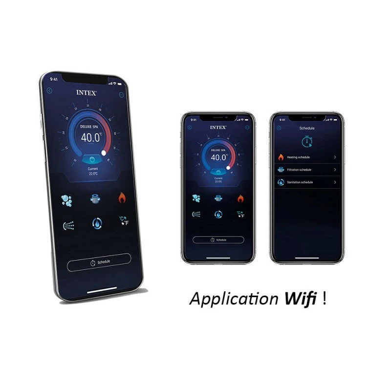 Intelligent, ce spa se connecte à une application Wi-Fi qui permet de programmer et de contrôler toutes les fonctionnalités du spa à distance.