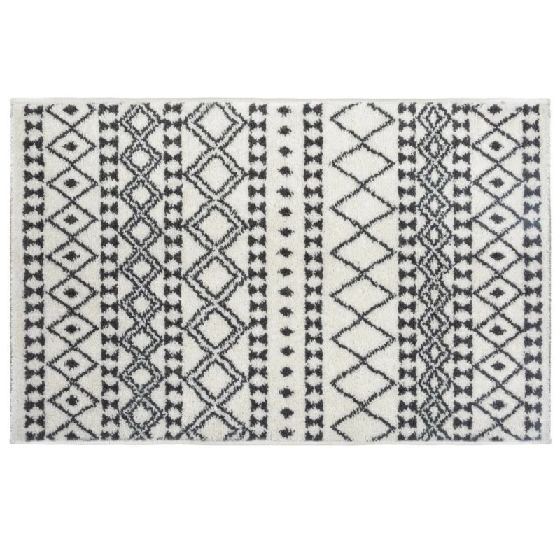 Tapis blanc et gris foncé avec motifs ethniques de la marque Atmosphera. Apportez une touche bohème à votre intérieur avec ce tapis motifs ethniques.