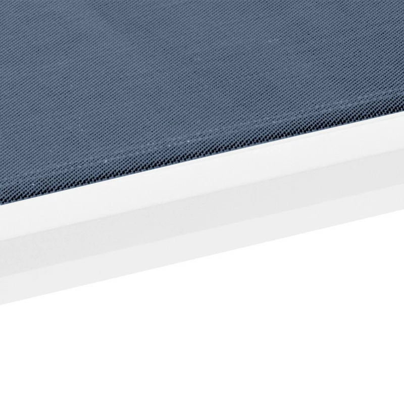 Profitez des beaux jours grâce à ce transat bleu pétrole et structure blanche de la marque Hespéride.